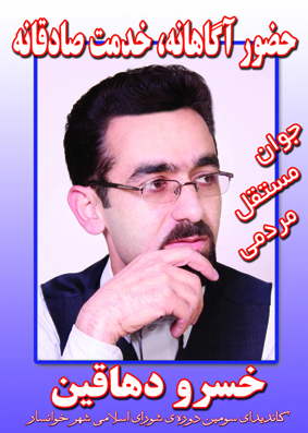 با عنایت خداوند منان و لطف و حمایت شما بزرگوران، نعمت بزرگ خدمتگزاری شما عزیزان برای 6 سال نصیب این حقیر گردید و اینک در واپسین ماه های عمر سومین دوره شورای اسلامی شهر خوانسار با سپاس از اعتماد و همراهی یکایک شهروندان خوب این دیار پرگهر، بر خود فرض می دانم ضمن قدردانی ویژه از همه کسانی که با بذل محبت عمیق خود، بار دیگر مرا شرمنده الطاف خود نموده و در طی ایام ثبت نام چهارمین دوره شورای اسلامی شهر مُصرّ به شرکت دوباره این حقیر در این عرصه شدند، به سبب عدم امکان حضور مجدد و پذیرش بار سنگین این امانت جداً عذرخواهی نمایم.